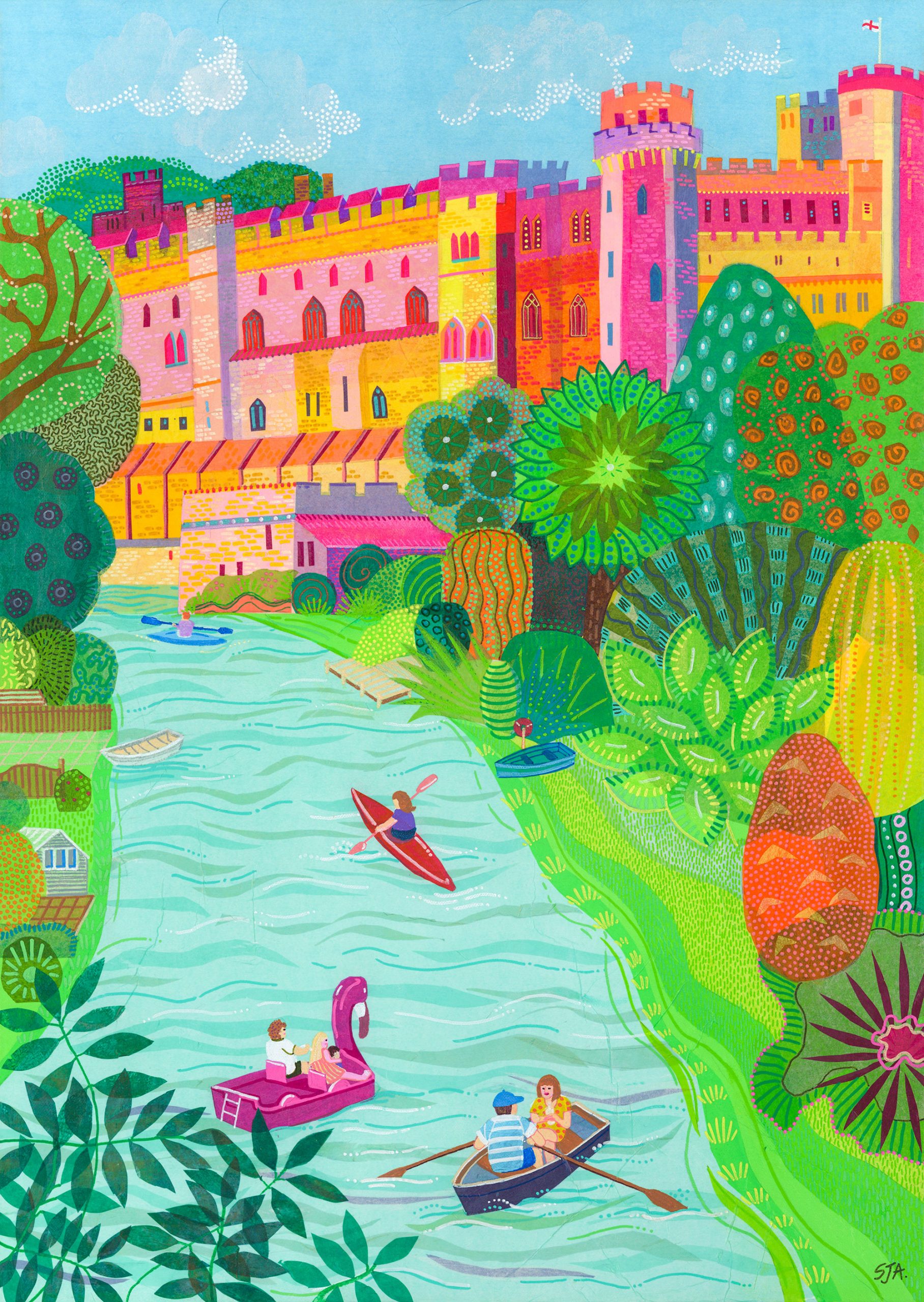 Often portrayed through stories of darkness and history, or as a lively day out, I wanted to capture something quieter and more personal — the feeling of connection people have to this place. In my Places I Love series, I’ve reimagined Warwick Castle in vibrant colour and intricate detail, celebrating it not as a fortress of the past, but as a place of joy, memory, and meaning.
